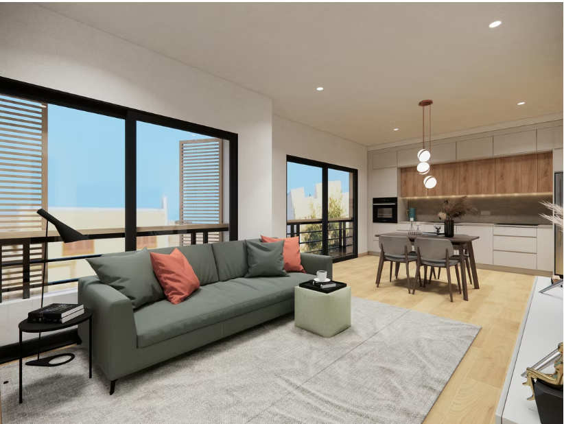 Ce duplex charmant au design moderne et intelligent offre une chambre à l’étage pour plus d’intimité, et un séjour spacieux avec cuisine semi-équipée au rez-de-chaussée.