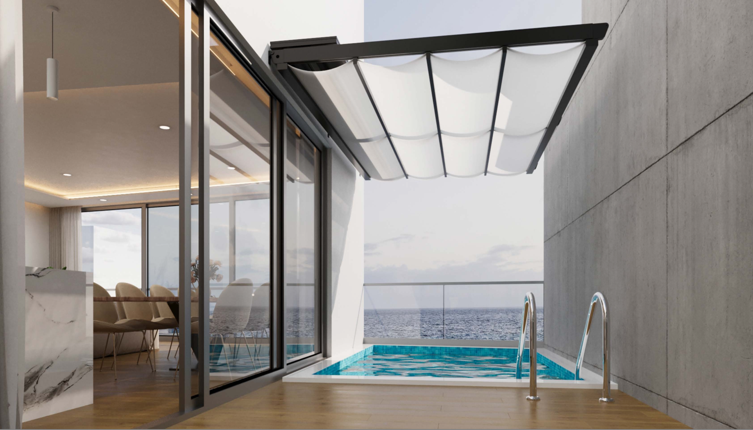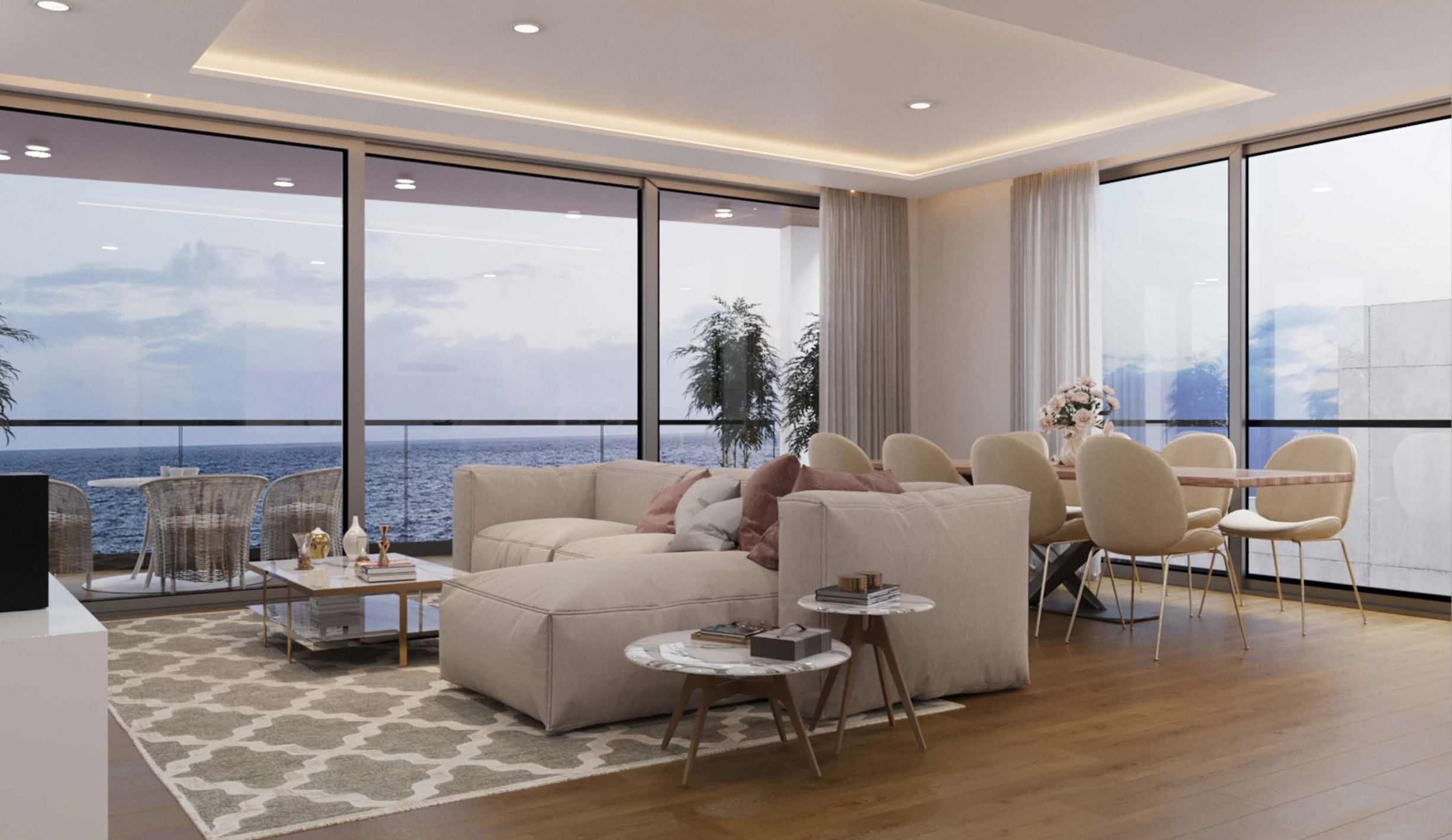 - Séjour lumineux orienté vers l’océan avec larges ouvertures vitrées