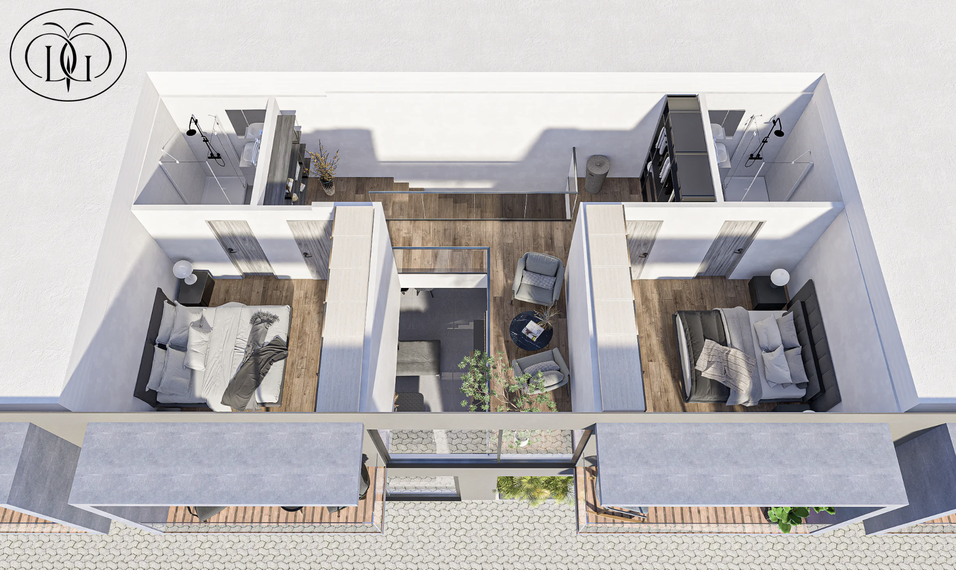 Au sein de DuarGema – House of Diaspora, ce duplex T2 d’environ 125 m² orienté sud-ouest offre deux suites avec salles d’eau privatives, chacune ouverte sur un balcon avec vue sur l’Atlantique. Les unités S01 à S04 bénéficient d’une grande intimité grâce à une allée exclusive et une implantation à l’écart du bâtiment principal. Le rez-de-chaussée du complexe propose restaurant, boutiques et centre de fitness, tandis qu’un stationnement couvert privé accompagne la résidence — idéale à la fois pour y vivre sereinement et pour générer des revenus passifs.